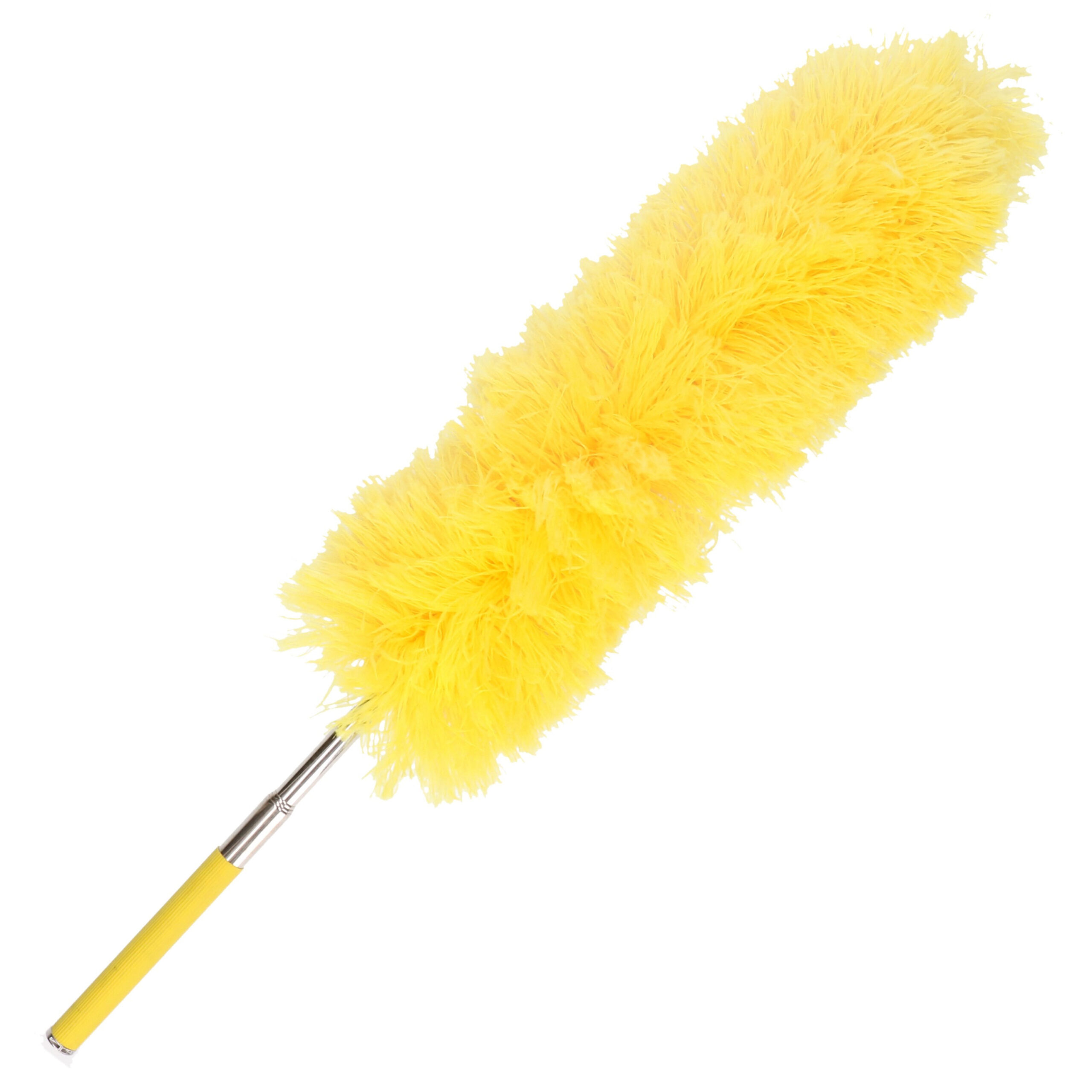Stof/spinnenwebben huis/slaapkamer plumeau telescopisch geel 59-125 cm