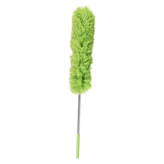 Telescopische XXL plumeau, in de kleur groen. Met deze uitschuifbare duster houdt u gemakkelijk uw huis of kantoor schoon. Uitgeschoven is deze plumeau ongeveer 280 cm lang, zodat u eenvoudig spinrag van het plafond kunt verwijderen. Plumeau/duster huishoudelijke artikelen.
