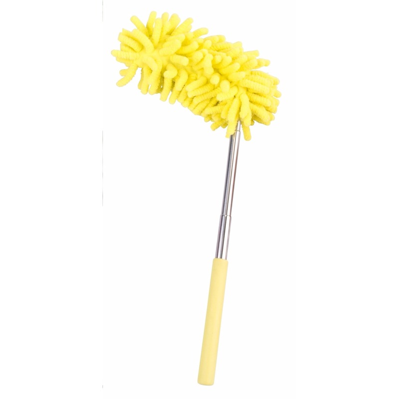 Telescopische gele plumeau 26-74 cm. Met deze duster hou je gemakkelijk je huis of kantoor schoon.